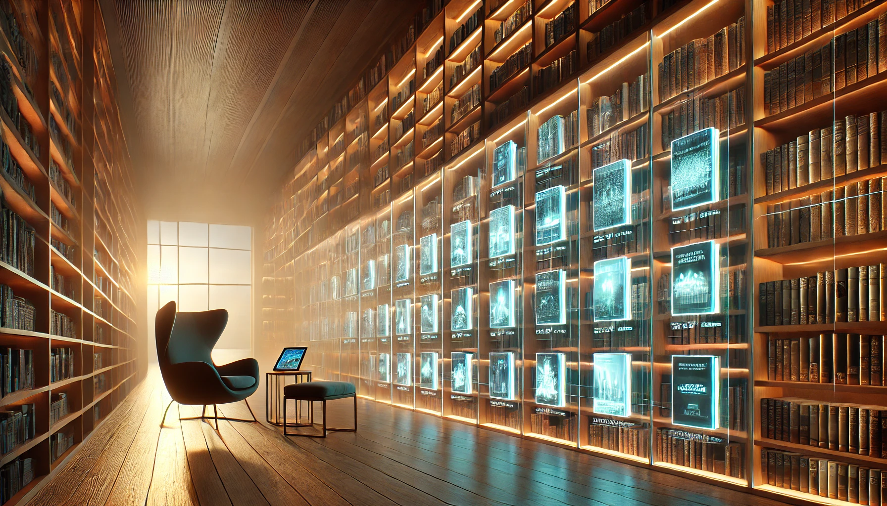 DALL·E-2025-05-20-13.28.40-Highly-realistic-16_9-cinematic-image-of-a-modern-library-blending-physical-and-digital-elements_-on-one-side-tall-walnut-bookshelves-filled-with-har.webp